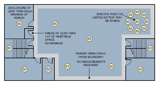 • Enclosures less than 60m₂ may be reduced to 60dB(A)