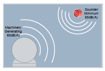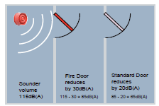 Where it is not possible to place a sounder within a room, there will be a loss of approximately 20dB(A) through a standard door, and 30dB(A) through a fire door.