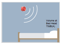 Where the alarm is intended to wake people, an SPL of 75dB(A) is required at the bed head. Generally this will require a sounder to be placed within the room.